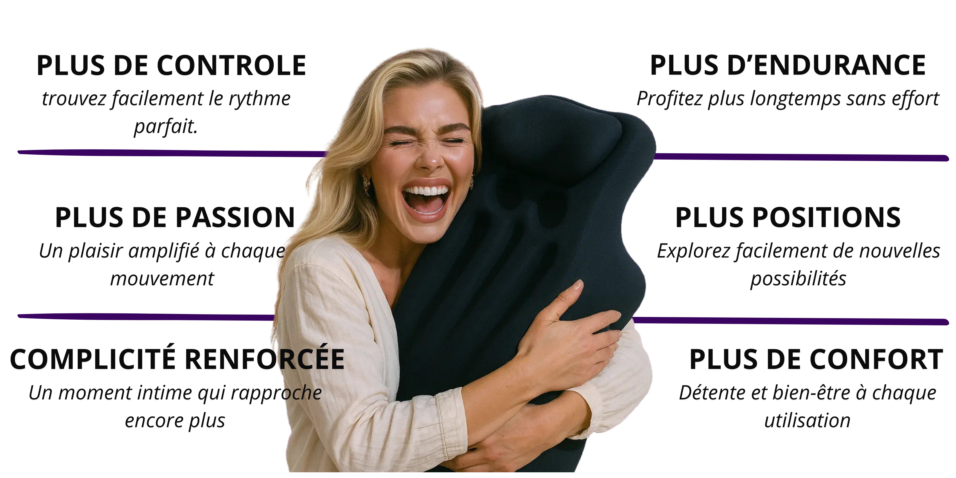 La position du corps change tellement que je le ressens beaucoup plus intensément – à chaque fois ! Le coussin fait désormais partie intégrante de notre vie intime.